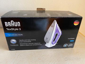 Braun TexStyle3 SI3030PU Ferro da Stiro a Vapore con 5 Anni di Assistenza, Piastra in Ceramica, Stiratura in Verticale, Punta di Precisione, Getto di Vapore 140g/min, Potenza 2350watt, Bianco/Viola