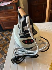Sistema stirante con caldaia a pressione in acciaio inox. Capacità riempimento caldaia 900 ml. Ferro con manico in sughero e termostato regolabile. Vaporizzazione verticale. Tasto luminoso di accensione caldaia separato dal tasto accensione ferro. Tappo di sicurezza.