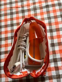 🔸 Colorazione moderna bianco/arancio – Un tocco di stile anche tra i tuoi accessori da viaggio.