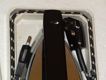 Ferro da stiro da viaggio con manico pieghevole Termozeta 485 Slim Line vintage (anni 60) , praticamente inusato e come nuovo (come si evince dalle foto) e perfettamente funzionante. Completo di elegante custodia piatta in plastica dotata di comodo avvolgicavo. Senza scatolo. Brevettato e Made in Italy! N.B.: Trattandosi di oggetto usato (per quanto come nuovo) e considerato che comunque ha un po' di anni alle spalle, l' oggetto e' venduto con esplicita esclusione di qualsiasi forma di garanzia. Inoltre si avverte che trattandosi di oggetto di natura "vintage", questo potrebbe non essere aggiornato alle normative in materia di sicurezza attualmente vigenti, per cui si vende esclusivamente per finalita' di collezionismo. Euro 30 + spedizione