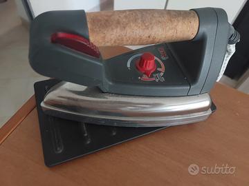 Ferro da stire professionale con manico in sughero. Va utilizzato insieme al Vaporetto Polti. Dotato di base di appoggio antiscivolo . Perfettamente funzionante e privo di segni di usura.