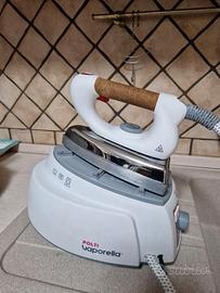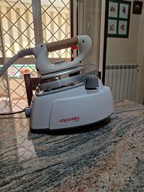 Ferro da stiro professionale con caldaia dotato di manico in sughero e piastra in alluminio. Sistema con caldaia in pressione. Regolazione del vapore, emissione continua del vapore, caldaia in speciale lega di alluminio Extra Alp, spia pronto vapore, indicatore livello dell'acqua. Il ferro è garantito, revisionato e decalcificato.