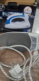 Piccolo ferro da stiro pieghevole. Non necessita di acqua per funzionare.