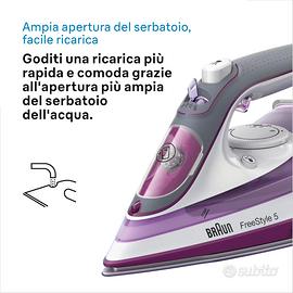 Piastra FreeGlide 3D SuperCeramic, Punta di Precisione, Manico Aperto Ergonomico, Ricarica 300ml, Efficienza Energetica, Sistema Antigoccia, 2700W, Viola