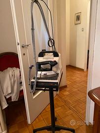 ferro da stiro professionale, ma utilizzato in casa per stirare al meglio. dotato di caldaia e piastra in acciaio. maneggevole da usare, comodo anche il carrellino dove tenerlo. era di mia mamma, e so che stira benissimo, io purtroppo non ho lo spazio per tenerlo