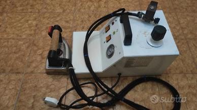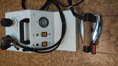 Ferro da stiro con caldaia professionale (Made in Italy) Resistenza ferro da stiro: 850W Resistenza caldaia:1.500W Capacità caldaia: 1,5 litri Buone condizioni generali, perfettamente funzionante sia il ferro che la caldaia. Completo di manometro pressione caldaia, spia fine acqua, spia pronto vapore.