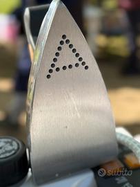 Ferro da Stiro a Vapore con Caldaia, Tappo di Sicurezza, 3 Bar. Ferro con piastra in alluminio e impugnatura in sughero isolante e traspirante. Chiusura scorrevole per un facile rimessaggio Tappetino poggiaferro removibile in silicone antiscivolo. Capacità tanica acqua (1.3). 1750 watt Made in Italy