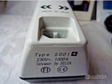 Ferro da stiro vaporizzatore da viaggio marca SELVAPOR Funziona a getto di vapore, utile per ravvivare camicie e abiti sgualciti dallo stare in valigia. Pratico e leggerissimo (peso 200 grammi) Doppio voltaggio: 230V, 1000W