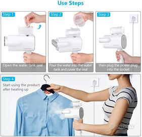 Ferro da Stiro Verticale, Stiratrice Verticale, Stiratrice a Vapore Portatile, Manico Pieghevole a 120°, Riscalda Rapido in 20 Perché scegliere stiratore verticale? 1. Stiratura ad angolo multiplo: Diversa dalle altre stirella verticale sul mercato, l'esclusiva area di stoccaggio dell'acqua di questo ferro stiro verticale lo rende adatto per la stiratura piatta, la stiratura sospesa e la stiratura obliqua. 2. Stiratura efficiente: L'avanzato sistema di riscaldamento istantaneo a circolazione pressurizzata consente alla stiratrice di vaporizzare rapidamente in 20 secondi, migliorando l'efficienza della stiratura. 3. Design portatile: La maniglia della ferro da stiro verticale a vapore può essere piegata a 120 ° per un facile trasporto durante il viaggio. Parametro: Potenza: AC220-240V Modalità di visualizzazione: pausa e riscaldamento visualizzazione luce rossa, visualizzazione luce blu quando in uso Temperatura del vapore: foro vapore ≥150 ° C pannello metallico ≥123 ° C Capacità serbatoio acqua: 110 ML Tempo di cottura a vapore continuo: 10min ± 3min Lunghezza del cavo di alimentazione esposto: 1,8 m Il stiro vapore verticale ha sia un termostato che un fusibile termico. Il termostato controlla costantemente la temperatura all'interno della macchina. Il fusibile termico è attaccato alla parte inferiore dell'elemento riscaldante. In presenza di alte temperature e calore elevato, il termostato rileva in anticipo il pericolo di alte temperature e il fusibile termico viene automaticamente escluso per garantire la vostra sicurezza. La temperatura del vapore può raggiungere più di 150 gradi. La posizione del foro del vapore è in materiale metallico. La combinazione dei due rende più veloce il riscaldamento. Il ferro stiro vapore verticale può essere riscaldata rapidamente in 20 secondi. Più conveniente La maniglia può essere piegata a 120 gradi. Dopo la piegatura, il ferro per stirare in verticale ha solo le dimensioni del palmo