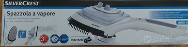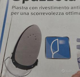 Ferro da stiro verticale con getto a vapore + spazzola per rimuovere i peluche dai tessuti. Molto leggero, ha la piastra con rivestimento antiaderente.