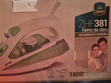 Ferro da stiro con piastra in ceramica modello ZHF381, potenza 1800W, termostato regolabile, cavo girevole 360°, serbatoio trasparente, funzione self clean. Mai usato e ben conservato.