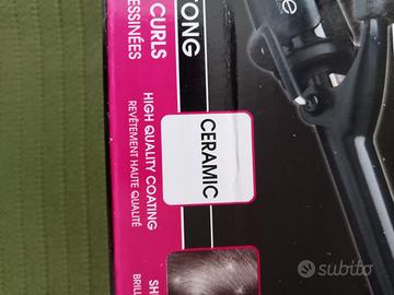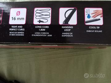ferro per creare riccioli o boccoli ai capelli in ceramica diametro 16 mm effetto brillante completo di scatola marca Rowenta modello for elite model look lunghezza del filo metri 1,80