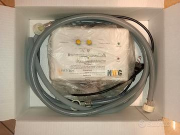 Fifty Box è un dispositivo prodotto da NWG progettato per ottimizzare l’alimentazione idrica della lavatrice (o lavasciuga/lavastoviglie) collegando l’elettrodomestico direttamente all’acqua già calda proveniente da caldaia, pannelli solari o pompa di calore. Se l’impianto lo consente, la documentazione tecnica indica un risparmio di energia elettrica fino all’80%, grazie alla riduzione dell’energia necessaria per il riscaldamento dell’acqua. Inoltre, il dispositivo permette di ridurre il consumo di detersivo fino al 50%, migliorando al tempo stesso l’efficacia del lavaggio. Vendo nuovo ancora nella scatola originale (aperto solo per scattare le foto).