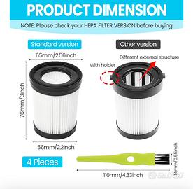 4 Pz Filtri di Ricambio per Filtro HEPA con Spazzola, Cartuccia Filtro HEPA di Ricambio Riutilizzabile Compatibile con Lubluelu 202,Oraimo OSV-102, Besswin W26, VacLife VL732, FSV001, FSV101