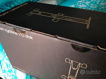La base di ricarica consente di riporre e caricare la v10 senza bisogno di bucare il muro. Ci sono inoltre slot porta accessori e un cassetto con degli accessori extra:
