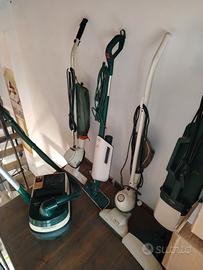 Per chiusura attività vendo in blocco folletti 115-117-121-scopa vapore - folletto a carello, Co accessori dell'epoca vari spazzole batti tappeto ecc. ecc. Nello stato in cui si trovano visto piaciuto.