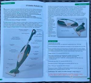folletto 135 con anche la lavapavimenti a secco con spazzole diverse secondo il tipo di pavimento , sono inclusi anche sacchetti originali con profumini