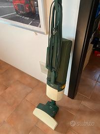 Perfettamente funzionante, scopa elettrica VK121 con vari accessori, sacchetti di ricambio, spazzole pavimenti, una spazzola parquet e lucidatura marmi, profumatori sacchetti e tubo flessibile con becco. Aggiungo inoltre nel prezzo lo sbatti tappeti e materassi con set di spazzole di ricambio. Ovviamente l’aspirapolvere hai i sui anni e presenta difetti estetici di usura ma per il resto è perfettamente funzionante. A Limbiate.