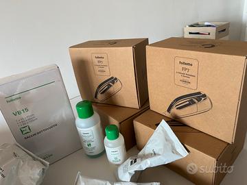 Folletto senza fili lavaspira completo di borsa con accessori e picchio. 4 scatole filtri ( totale 24 sacchetti filtrello premium) 1 smacchiatore liquido 1 koboclean liquido 2 buste polvere lavenia per materassi 1 busta kobosan polevere per tappeti 2 batterie 1 LAVAVETRI folletto