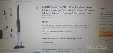 folletto senza fili aspirapolvere più accessorio lavaggio pavimento, usato si e no 10 volte praticamente nuovissimo con accessori vari, valore 1500 vendesi, al miglior offerente
