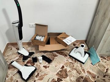 Vendo folletto senza filo come in foto: acquistata tre anni fa, usata pochissimo. In dotazione 22 sacchetti (18 in scatola ancora chiusa e 4 nella scatola aperta) e 20 profumatori; due batterie con caricatore; una pulilava con due panni in dotazione; una spazzola multifunzione e una spazzola per pavimenti duri. Il tutto ad 800€ poco trattabili.