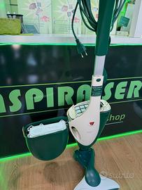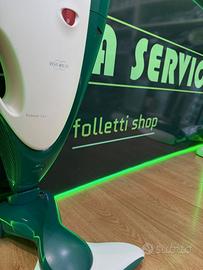 Modello VK135 Rigenerato L'aspirapolvere è stata rivista e REVISIONATA in tutte le sue parti e si presenta come nuova. VANTAGGI Questo modello, grazie al corpo spazzola snodabile con ruote offre molteplici vantaggi! Permette alla scopa di stare dritta da sola senza la necessità di appoggiarla al muro o di appenderla (evitando sicuramente di farla cadere se riposta male o frettolosamente); Tutto il peso è concentrato sulla spazzola (e non su braccio) grazie alla presenza di due ruote in gomma, quindi, il passaggio risulta leggero, consentendo una maneggevolezza e praticità dell'utilizzo. POTENZA ASPIRANTE Con questo apparecchio è possibile regolare in tre fasi la potenza aspirante Il sistema di aspirazione è di tipo indiretto (tutto ciò che viene aspirato passa per la spazzola, il condotto di aspirazione interno ed arriva direttamente nel sacchetto) La polvere che viene aspirata non attraversa più il motore, ma passa in un condotto laterale che convoglia lo sporco nel sacchetto. FENOMENALE! In pratica anche se accidentalmente si aspira qualcosa di grossolano al motore non succede nulla perchè lo sporco non lo attraversa! SISTEMA DI FILTRAGGIO Inoltre questo modello è dotato di due filtri: -filtro griglia per la protezione del motore -microfiltro igienico hepa che ha la funzione di trattenere le micro polveri in uscita I filtri vanno sostituiti ogni volta che si termina una confezione di sacchetti. L'aria che esce da questo modello è tutta filtrata!!! I sacchetti sono in microfibra con perle ai carboni attivi integrate, necessaria per assorbire i cattivi odori. Per sostituirli basterà aprire la linguetta gialla posta lateralmente, estrarre il sacchetto usato e posizionarvi il nuovo. Per informazioni non esitate a contattarci risponderemo con gentilezza e professionalità ad ogni vostra richiesta. Grazie