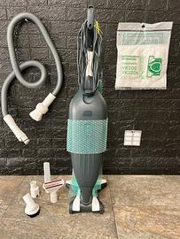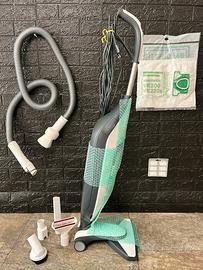 Ultimo modello con cavo di alimentazione ultra leggero e silenzioso pesa solo 3,3 kg inoltre grazie alla spazzola HD 65 S dotata di doppio snodo riesce a raggiungere gli angoli più difficili di casa e una volta finito di passare si tiene in piedi da solo, senza doverlo poggiare al muro.