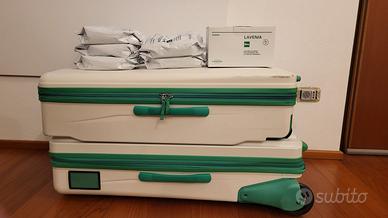 Usato veramente poco, campionario con trolley. Lavapavimenti,panni vari, spazzole aspirazione, picchio, lavavetri, liquidi vari e buste per materassi e tappeti. Solo ritiro a mano per dimesioni problematiche per il trasporto.