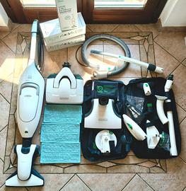 Vendo folletto per passaggio a versione a batteria. Campionario completo di tutti gli accessori originali folletto compresi lava pavimenti, batti tappeti, picchio , lavamaterasso e tutti quelli in foto. In ottimo stato di conservazione e sempre trattato con riguardo con alcuni accessori pari al nuovo. Dispone di 18 sacchetti e della borsa porta accessori originale. prezzo trattabile. spedizione disponibile a carico acquirente.