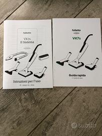 Vendo Folletto VK7S senza fili Originale il kit comprende anche una batteria di ricambio il caricabatterie la spazzola per i tappeti e divani cinque sacchetti di ricambio, la polvere ad azione ipoallergica per i tappeti i profumini da mettere nel folletto lo smacchiatore sempre per tappeti e divani e la polvere per prevenire le allergie e per la cura di materassi comprato a settembre 2024 lo vendo perché ho cambiato modello 900,00€ poco trattabili Spedizione compresa