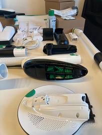 Vendo sistema aspirapolvere Folletto VK7s usato molto poco e completamente ricondizionato, completo di tutti gli accessori e della relativa borsa, spazzole aspirapolvere e lavapavimenti, 2 batterie, 2 caricabatterie, tracolla, 23 filtri, 2 panni pavimenti, 1 boccetta di lavapavimenti. Il tutto è ancora in garanzia, comprese le batterie. Funziona benissimo, come da nuovo, lo vendo soltanto perché lo uso poco per le potenzialità che ha, a me basta qualcosa di più semplice.