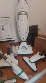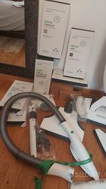 Folletto Vorkwerk VK220S completo di spazzola elettrica multifunzionale EB420S, pulilava SP600S, HD65S spazzola per pavimenti duri, spazzola elettrica per imbottiti PB440S con tubo flessibile ed MP440S lavamaterasso più set di panni nuovi adatti alle diverse superfici, 5 filtri di ricambio, 3 buste di polvere per pulizia dei materassi e 5 bustone di polvere per pulizia tappeti e moquette, sono presenti tutti gli accessori in foto "panoramica del prodotto" ad eccezione di MR440S e VF200S, molti accessori ancora nuovi. completo di sacca ancora sigillata per il trasporto.