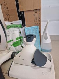 totalmente funzionante completo aspirapolvere + lava pavimento + dosatore + 1 panno per lucidare + 1 panno per lavare + filo longo 3 metri + sacchetti, ancora con scatola originale