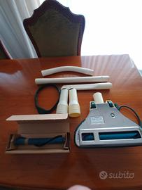 Vendo un set di accessori originali del vecchio Folletto VK116 anni 70, perfetti, ritrovati in cantina. In particolare battitappeto ET4 e sua spazzola di ricambio, gomma protezione motore e raccordi per sacco.