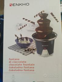 Fontana di cioccolata checrea una cascata di gustoso cioccolato fuso in pochi minutidove puoi immergere la frutta che più ti piace. E' dotata ditorre in acciaio inoxe potenza 90 W.