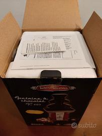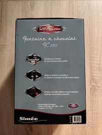 Chocolate fountain marca Siméo, modello FC 250, Retro Series - Nostalgia Electrics. Fontana di cioccolato dal design retrò, con termostato regolabile, lavabile in lavastoviglie. Potenza: 70-100W Dimensione fontana montata: Altezza: 36 cm Larghezza: 17 cm Profondità: 17 cm Nuova, mai utilizzata, aperta per verificarne la funzionalità, nella confezione originale. Con ritiro a mano (su Milano) è preferibile pagamento con PayPal.