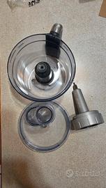 Vendo per inutilizzo, accessorio per la planetaria kenwood chef XL. Food processor kenwood danneggiato ma comunque funzionante. La cosa importante per utilizzarlo è che appena arriva a battuta non bisogna continuare ad avvitarlo e mentre ci si mettono le verdure dentro ad esempio, quello che facevo io è semplicemente tenere il manico in modo che la rotazione non continua ad avvitarlo, io lo uso così da circa un anno, ci ho fatto verdure alla julienne, crosate con il metodo della sabbiatura ecc... ci vuole solo un po' di delicatezza.
