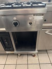 Cucina professionale a Gas in acciaio inox USATA 2 fuochi di cui uno solo funzionante - Serie cm. 90 prof. con sottostante vano aperto. Cucina venduta nello stato in cui si trova vista e piaciuta.