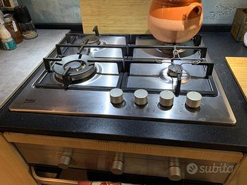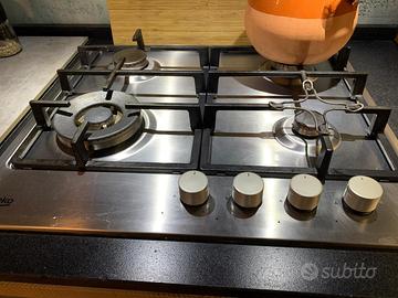 Vendo fornello in acciaio BEKO, 4 fuochi con griglie in ghisa, alimentazione a gas, larghezza 60 cm.