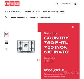 Fornello da incasso Franke COUNTRY 750 FHTL 755 INOX SATINATO misure 750x510 misure esterne; causa cambio cucina DISPONIBILE DAL 15 APRILE