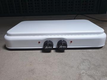 causa inutilizzo, vendo fornello elettrico ARDES ORNILLA corpo acciaio smaltato bianco 2 piastre in ghisa (piastra piccola 145mm x 1000w, piastra grande 180mm x 1500w). vendo in confezione originale.