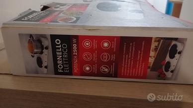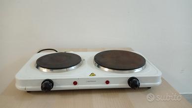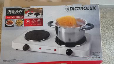 Fornello elettrico da campeggio 2500 w marca Dictrolux con due piastre in ghisa e 5 livelli di temperatura. Dimensioni 23x45 cm.