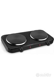 FORNELLO ELETTRICO 2000W IN ACCIAIO 2 PIASTRE TERMOSTATO 5 LIVELLI TEMPERATURA PIASTRA IN GHISA