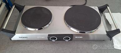 Duronic HP2 SS Fornello Elettrico 2500W 2 Piastre in Ghisa con Manici Termoisolati Temperatura Regolabile Piano Cottura Portatile per Campeggio Viaggi Ufficio e Casa Acciaio Inox Argento.