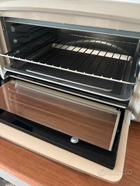 - 4 tipologie di cottura - tempo, con il suono una volta pronto - temperatura fino 230 - forchetta di rimozione griglia e leccarda - misura fornello complessivo : 45x35 - teglia interna : 21,5x 28 - griglia: 25x16,5 Nota: usato solo un mese, cambio per ragalo di un forno più grande