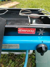 Vendo fornello a gas GPL due fuochi con relativa piastra in ghisa per la cottura dei cibi.