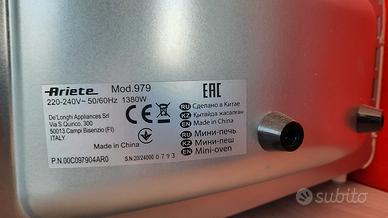 Vendo fornetto elettrico Ariete Vintage modello 979, usato solo una volta perché si è rivelato troppo piccolo per le esigenze della mia famiglia.