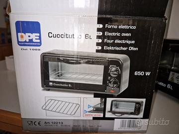 DPE Cuocitutto 6L, Forno elettrico, 6 L, 6 L, 100 - 230 °C, 1 ripiani, Forno elettrico, Capacità interna forno totale: 6 L, Nero, Tipo di controllo: Manopola, Tipo di timer: Meccanico. Larghezza: 33 mm, Profondità: 195 mm, Altezza: 165 mm