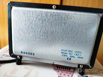 Vendo pratico fornetto elettrico con resistenza, perfetto per utilizzo in campeggio, van o camper grazie alle sue dimensioni compatte e al basso consumo energetico.