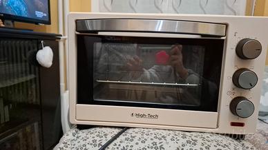 Questo dispositivo è un fornetto elettrico ventilato a marchio High-Tech. Capacità:21 litri Potenza:1280W Funzionalità:Ventilazione, funzione grill, luce interna e doppio vetro Controllo:Timer regolabile fino a 60 minuti e temperatura regolabile da 100°C a 230°C Ritiro presso venditore.